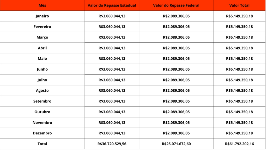 VALORES MENSAIS DO CONTRATO DE PROGRAMA PARA GERENCIAMENTO DO OBJETO SAMU 192 EM 2025